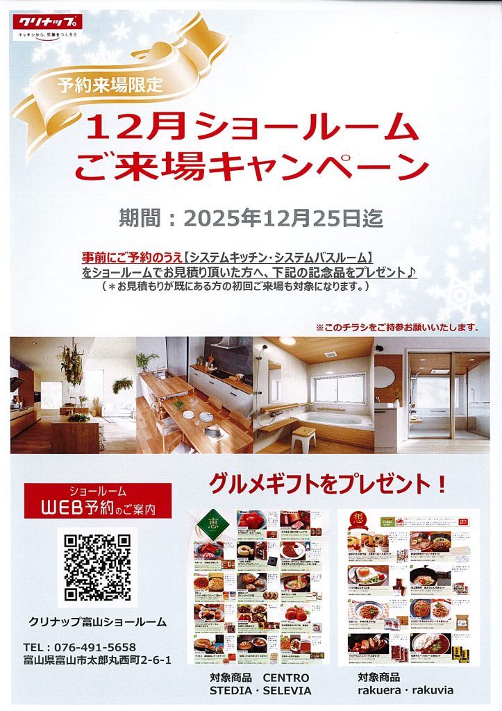 クリナップ 12月ショ-ル-ム ご来場キャンペーン